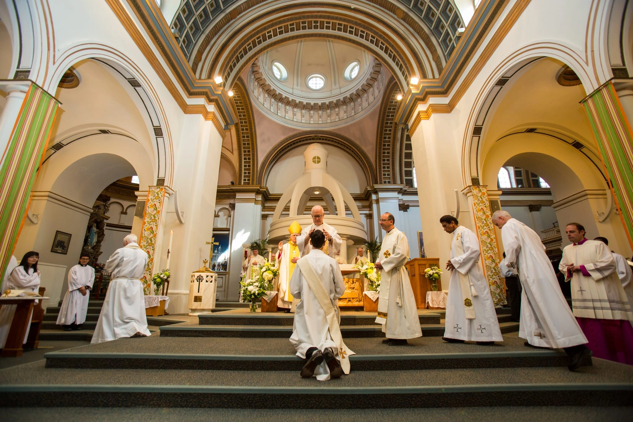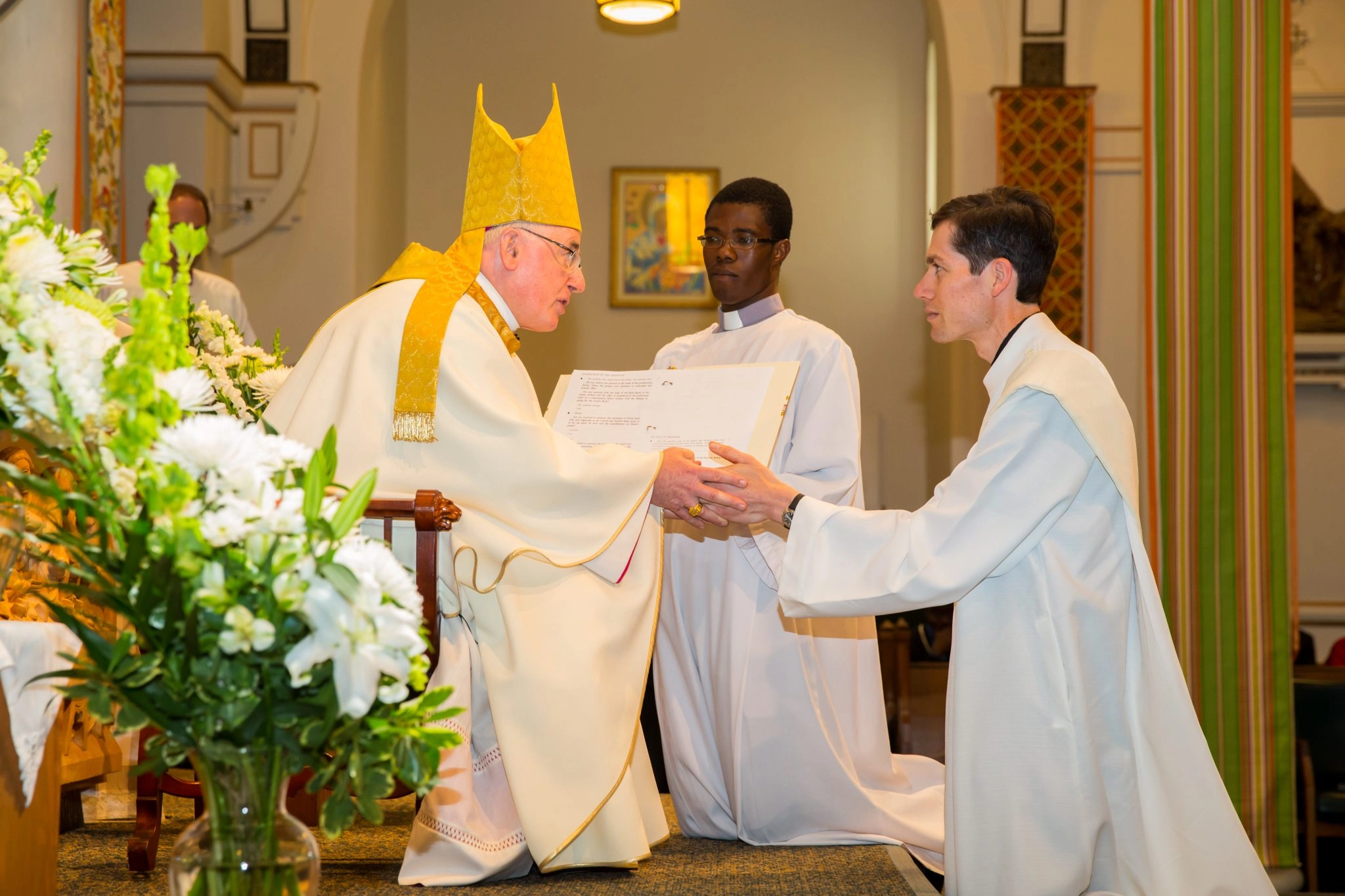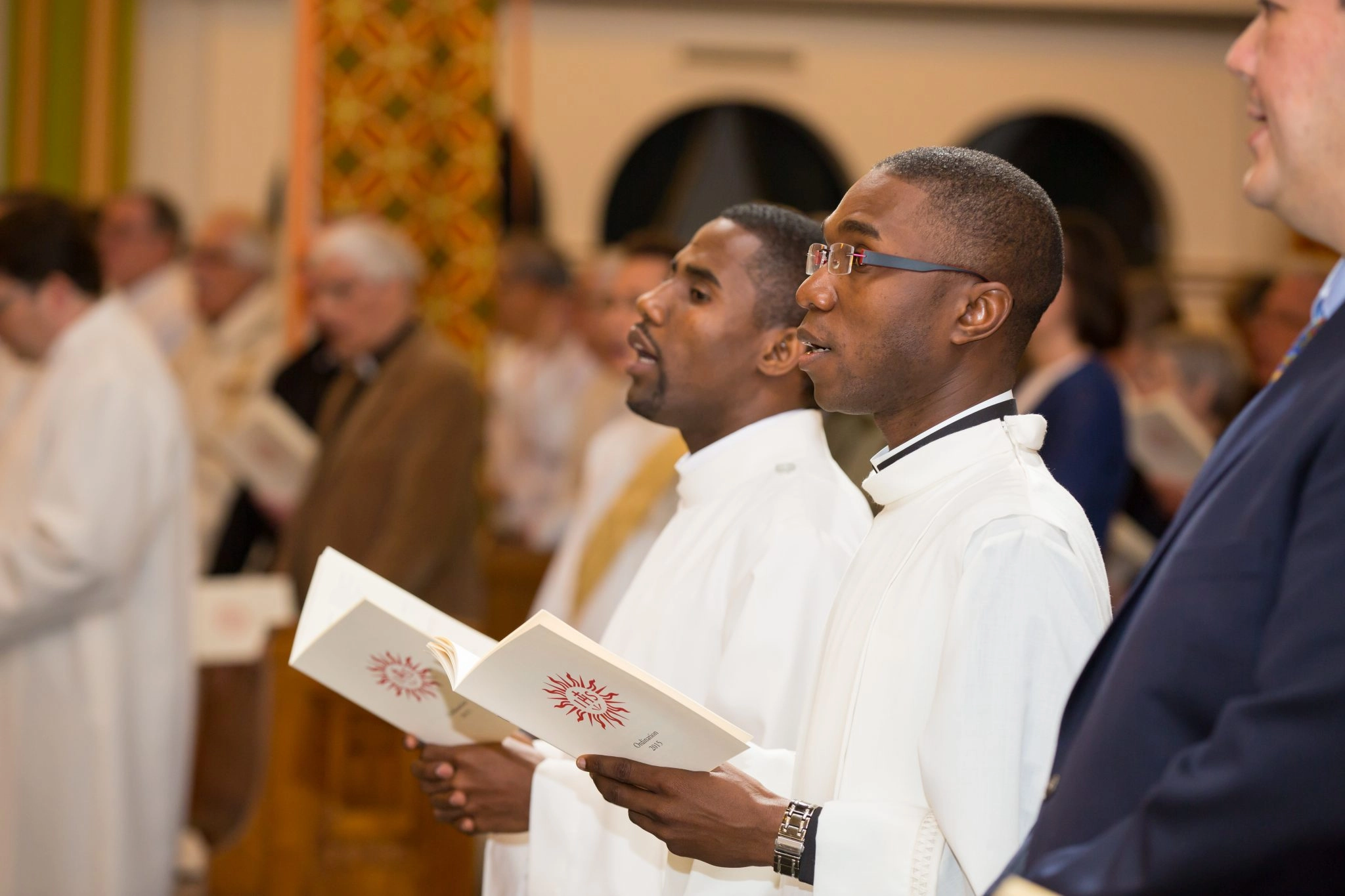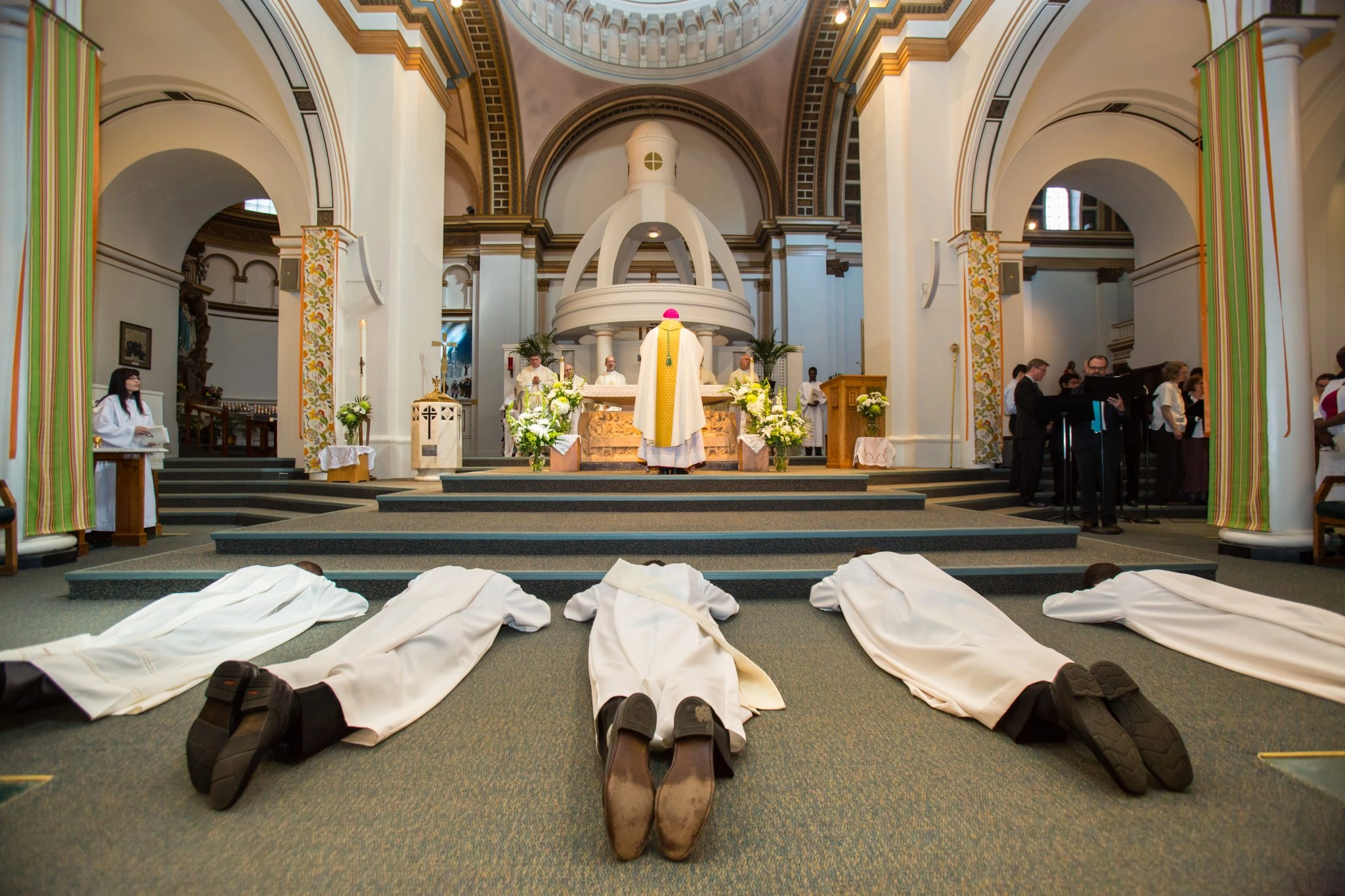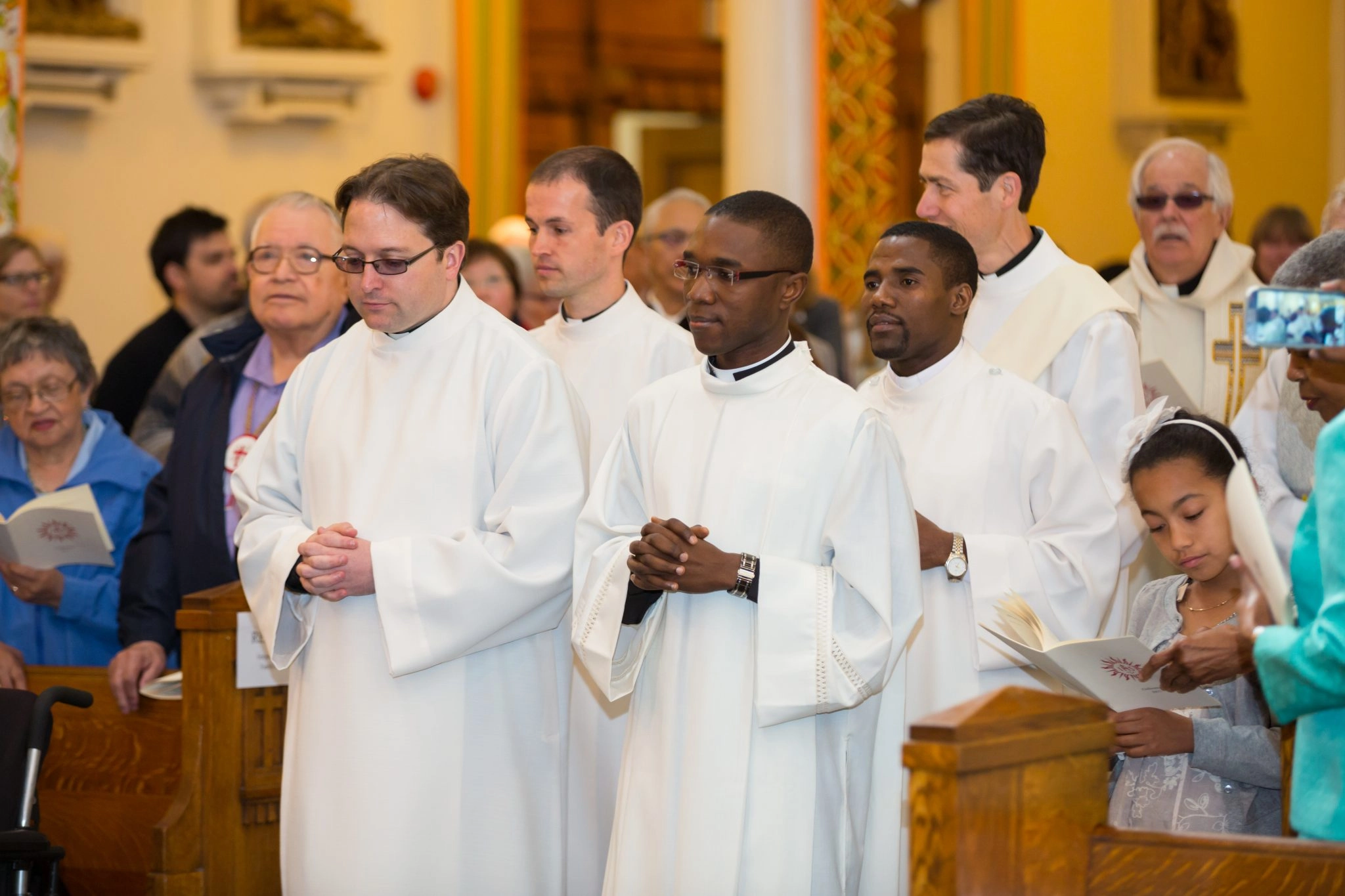 With great joy and gratitude in God’s grace, Jesuit Gregory Kennedy was ordained to the priesthood on May 23, and his fellow Jesuits, Matthew Charlesworth, Jean-Robert Déry, Paul Robson, and Emmanuel Saint-Hilaire, to the diaconate, at Our Lady of Lourdes Parish in Toronto. The Most Reverend Terrence Prendergast, Archbishop of Ottawa presided at the ordination liturgy for his fellow Jesuits.